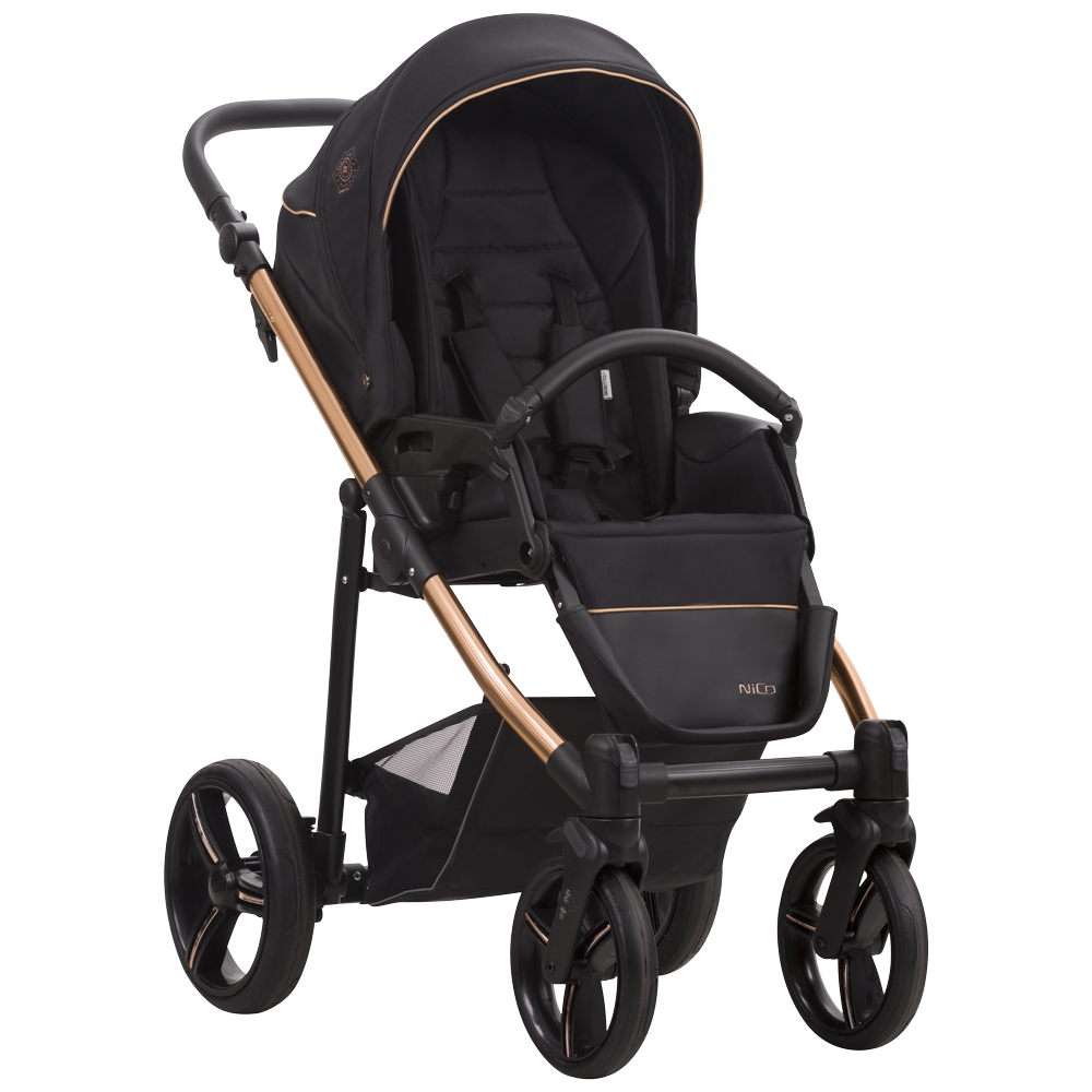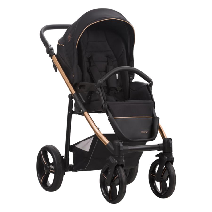 Bebetto Nico to wózek dla osób szukających funkcjonalnej i stylowej spacerówki. Siedzisko na stelażu możemy zamontować tyłem jak i przodem do kierunku jazdy. Możliwość złożenia spacerówki wraz ze stelażem sprawia, że wózek jest bardzo wygodny w przechowywaniu i transporcie. Model ten posiada koła Flexy Wheels, które są trwałe oraz nie wymagają dopompowywania. Stelaż Nico wyposażony jest w amortyzatory minimalizujące drgania powstałe podczas jazdy po nierównościach.
