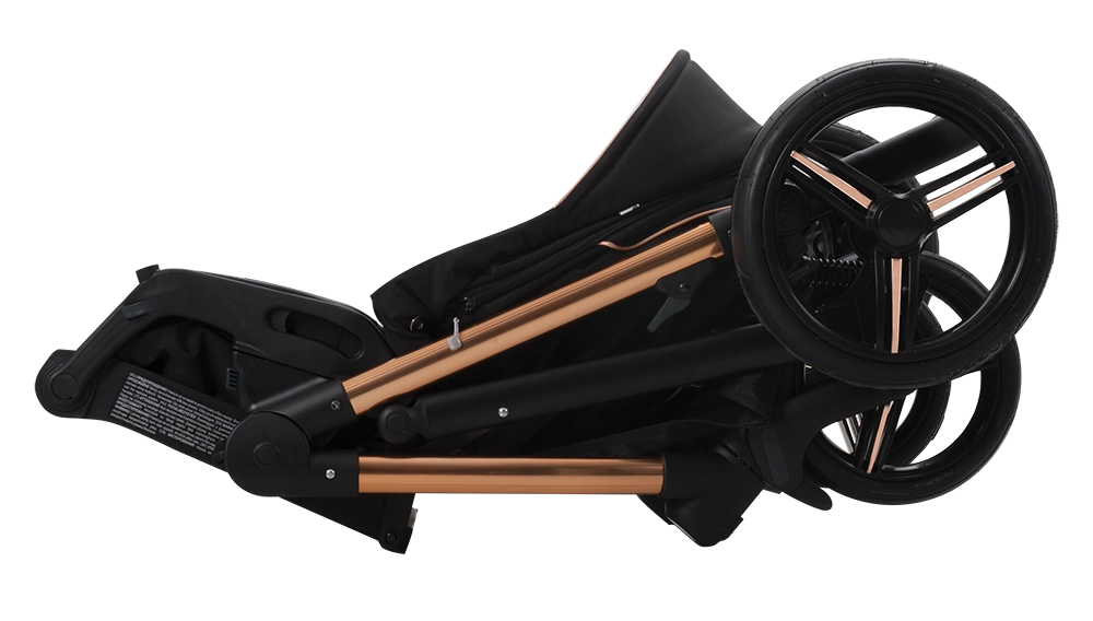Możliwość złożenia spacerówki wraz ze stelażem sprawia, że wózek jest bardzo wygodny w przechowywaniu i transporcie. Składanie jest możliwe zarówno przy siedzisku wpiętym tyłem do kierunku jazdy jak i przodem.