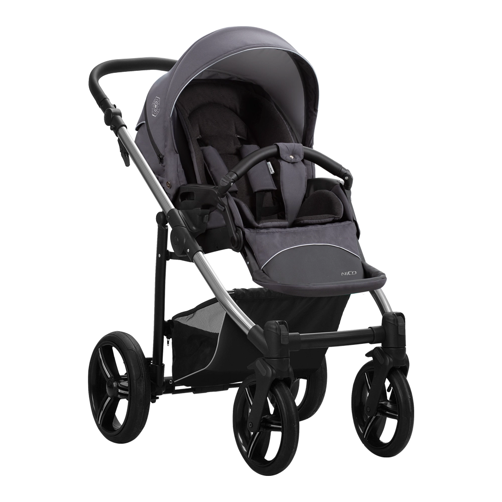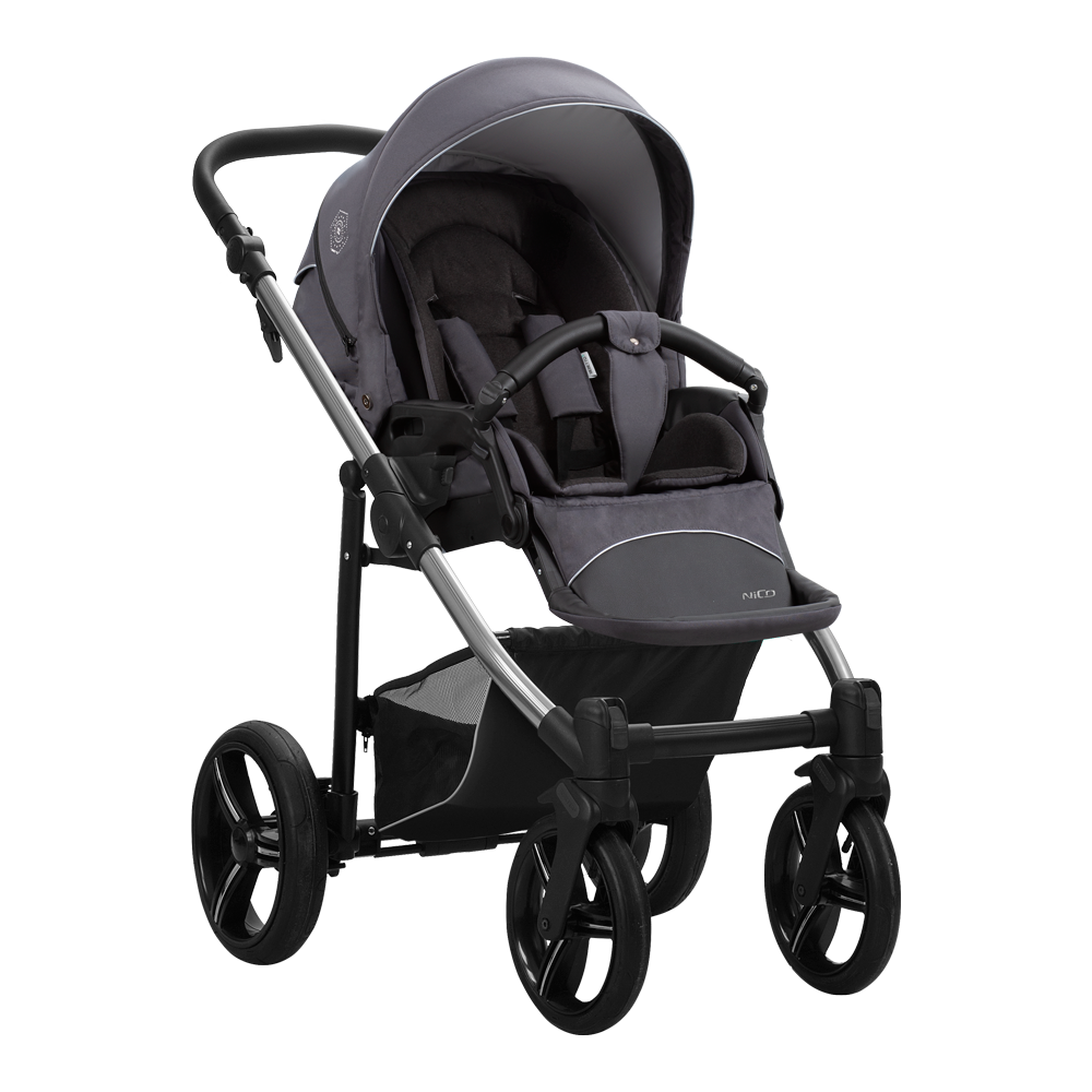 Wózek składa się wraz z siedziskiem spacerowym tyłem jak i przodem do kierunku jazdy wraz z siedziskiem spacerowym do kompaktowych rozmiarów, dlatego wózek jest łatwy zarówno w przechowywaniu i w transporcie. Spacerówka Nico świetnie dopasuje się do potrzeb dziecka oraz rodzica.