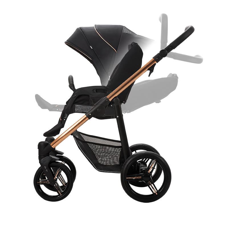 - możliwość złożenia stelaża wraz z siedziskiem spacerowym zarówno tyłem jak i przodem do kierunku jazdy