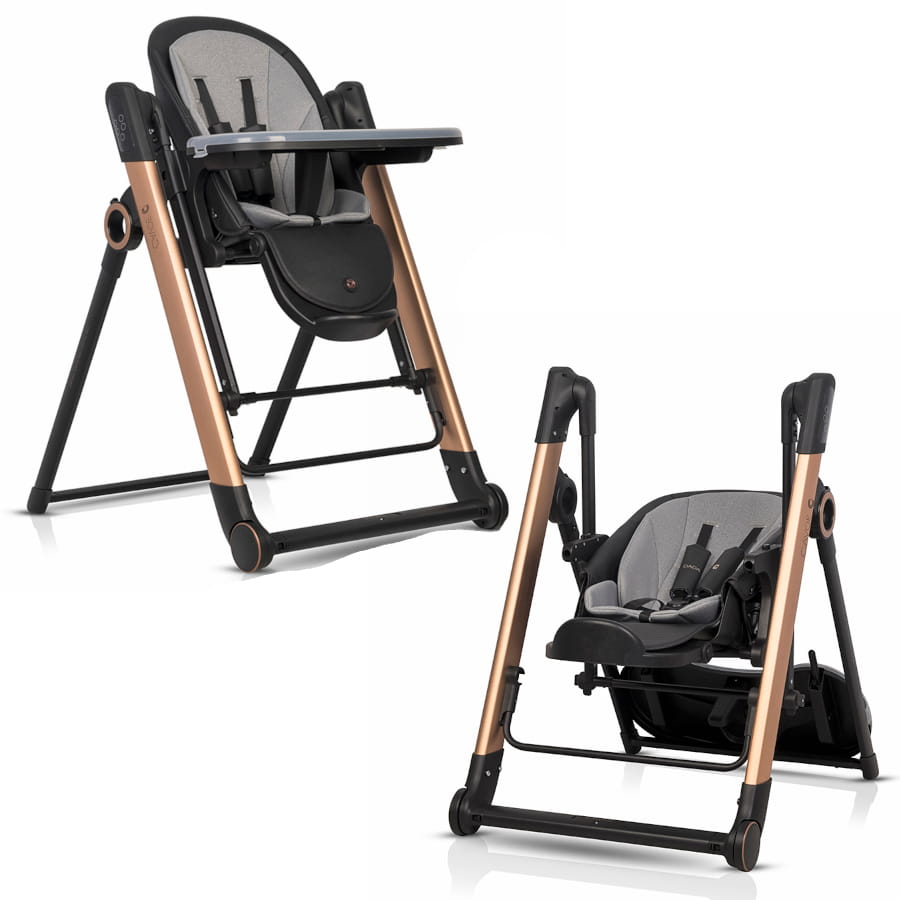 Cavoe Dada łączy w sobie funkcje elektrycznej huśtawki dziecięcej i komfortowego krzesełka do karmienia.